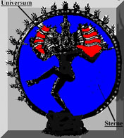 Shiva ist der kosmische Mensch im >>SEIN<< aus dem sich das Universum spiralförmig im- und gegen den Uhrzeigersinn ausdehnt.